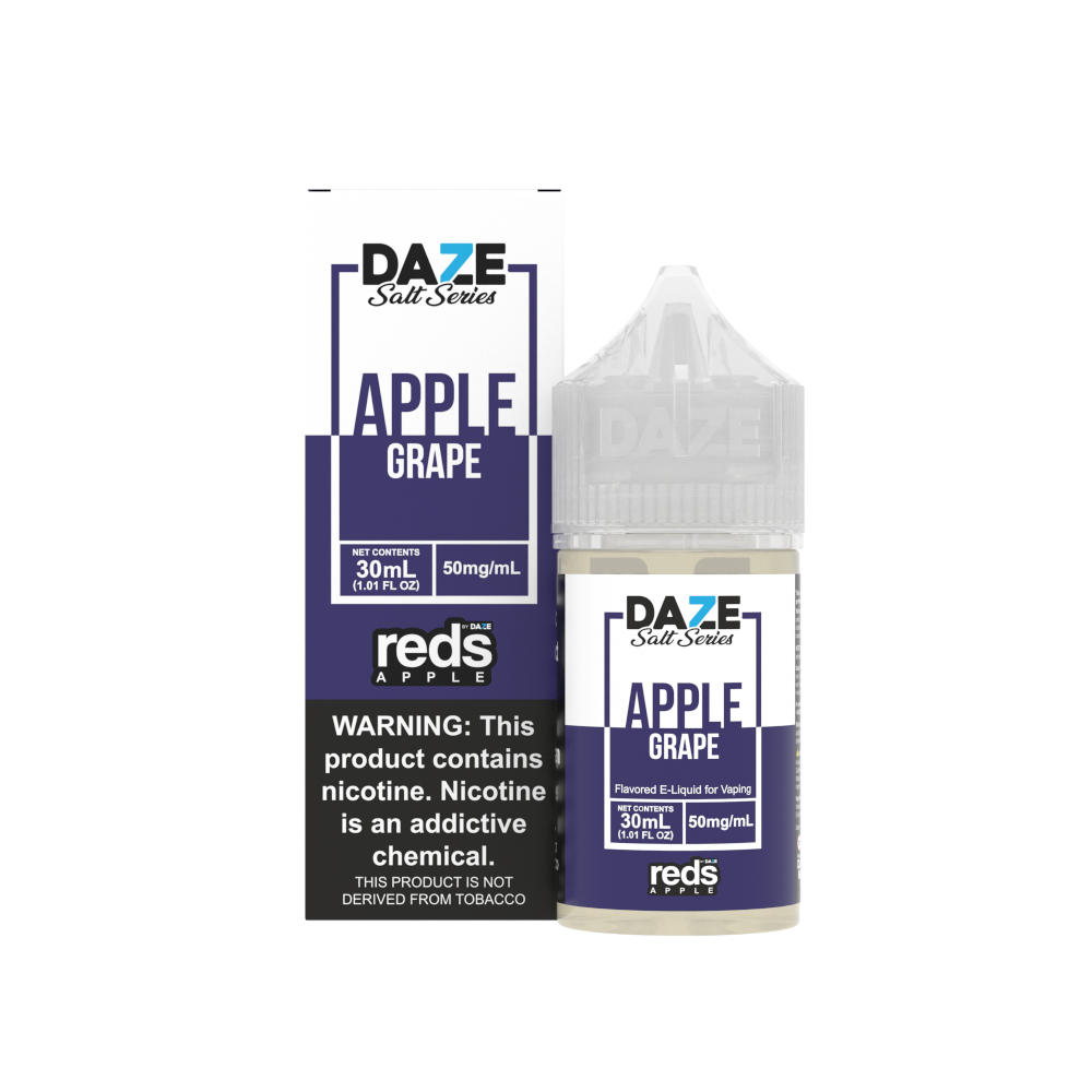 7 Daze Salt Reds Grape Apple eJuice is the combination of two explosively juicy and exquisitely fresh fruits. Grape Reds Apple vape juice tastes exactly like a nice, refreshing glass of freshly-squeezed juice made from sweet red apples and a plump concord grapes. On the inhale you get a juicy and sweet grape flavor, making your mouth water. As you exhale, that refreshing taste of red apples will delight your tongue as well as your sweet tooth.