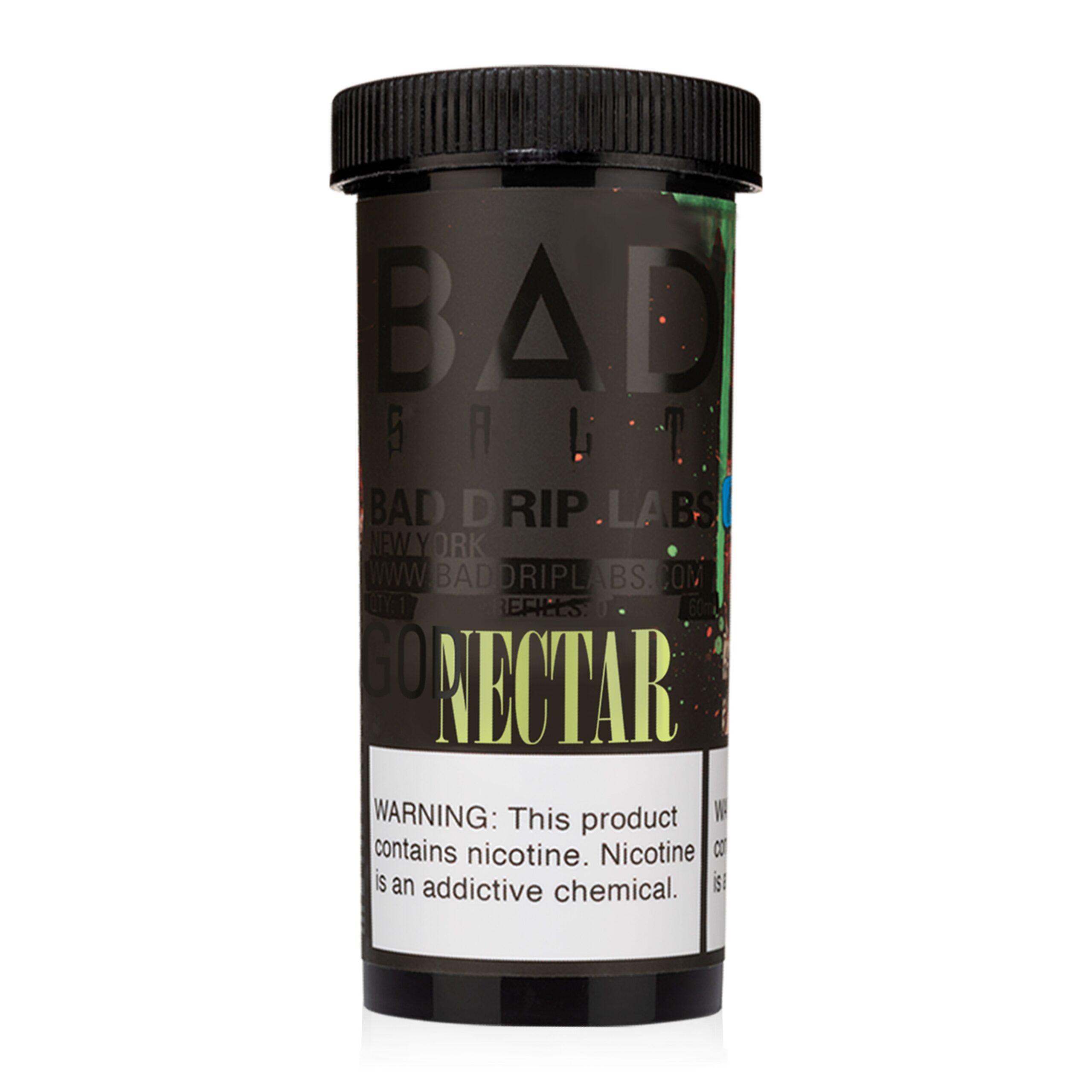 Bad Drip God Nectar Salt is formulated specifically for closed vapor devices and pod systems. Salt-Nic juice is NOT recommend for use in sub-ohm tanks, RTAs, RDA’s, and similar devices.