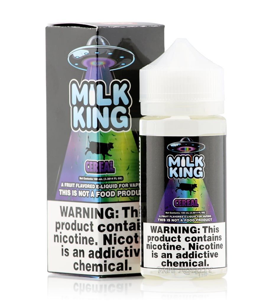 Milk King Cereal eJuice by DripMore is a bowl of your favorite assorted fruity cereal drenched in rich, creamy milk.