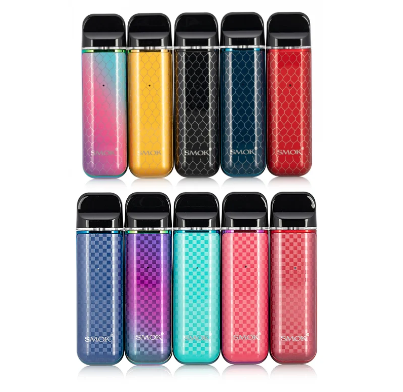 The SMOK NOVO 3 Pod System Kit takes the original SMOK NOVO and upgrades it. The SMOK NOVO 3 Kit keeps the originals elegant shape while sporting a visually striking new carbon fiber finish, spacious 800mAh battery capacity, and uses an intuitive draw-activated firing method to catalyze the vaporization of premium nicotine salts within the 2mL cartridge. Operating off a draw-activated firing system, the NOVO 3 Pod System is great for those that are on-the-go. Without any buttons, users do not have to worry about the device auto-firing and or burning out their coils within the 2mL pod. The battery life can be viewed via the LED Indicator Lights, the Novo 3 Pod System can be recharged from the bottom using the supplied USB Port and features pass through capabilities to allow the user to vape while the device is charging.