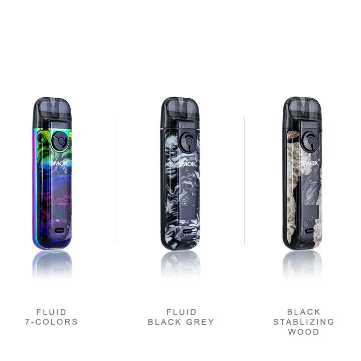 SMOK NOVO 4 25W Pod System has a Side Fill System with Silicone Stopper, which enables you to quickly and easily refill your favorite e-juice or nicotine salts. And thanks to Magnetic Pod Connection, you can do that just in seconds. Ergonomic Mouthpiece fits perfectly and allows you to enjoy each puff you take. The device is also equipped with a 0.49″ OLED Display Screen, which shows all the crucial information about the current settings. It is important to note that SMOK NOVO 4 Pod System features plenty of protection systems, and among them, you can find 8s Overtime Protection, Short Circuit Protection, Low Voltage Protection, and Lithium-Ion Protection. Excellent performance and durability are not all this device has to offer! The brand made sure to focus on design as well, and they have prepared plenty of colorful options for their clients. Vapers can choose from 10 gorgeous finishes of pod system. Among the available models, you will find Blue Gray Cobra, Cyan Pink Cobra, Red Stabwood, Black Stabwood, Black Carbon, Silver Carbon, Fluid Black Gray, Fluid 7 Color, Black Armor, and White Armor.