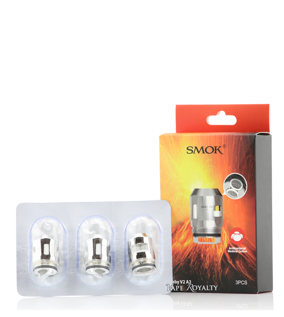 The SMOK TFV8 Baby V2 Tank Replacement Coil Pack are high performance MAXIMUM MESH replacement coils for the TFV8 Baby V2 Sub-Ohm Tank and continues the classic TFV8 series coil design with a more highly tuned mesh function. The TFV8 Baby V2 Replacement Coils come in three types: the A1, A2, A3 coil family (All in which are NOT compatible with the TFV8 Baby Beast); The A1 coil head features a large heating area, rated at 0.17 ohm, single mesh with the capabilities of 90 to 140W (recommended at 110 to 130W). The A2 coil head features dual heating cores for larger clouds, rated at 0.2 ohm, double mesh coils with the capabilities of 50 to 80W (recommended at 65 to 75W). The A3 Coils are meant for pure flavor and thicker clouds, rated at 0.15ohm, triple mesh coils with the capabilities of 60 to 100W (recommended at 80 to 90W).