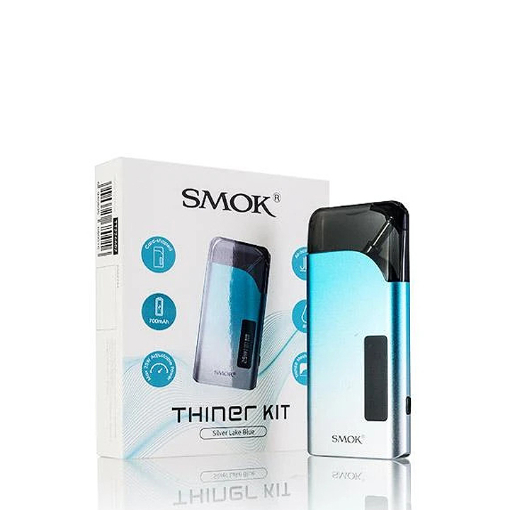 The SMOK THINER is a card-style and slim and convenient pod system device, features a high-capacity of 750mAh battery with a buttonless inhalation system, and the built-in mesh coil in the pod will bring you endless deliciousness. Space aluminum alloy the resulting body is slim and durable. There is a 750mAh rechargeable battery inside the body, which supports Type-C fast charging. A perfectly proportioned 0.69-inch OLED display can be seen on the front of the Thiner Kit, and the screen interface can be clearly seen all the data. Comes with a button on the side to adjust the wattage, up to 25W. Thiner Kit is no firing switch, you no longer have to worry about accidents caused by accidental firing, just take an inhalation, and you can get a smooth and huge cloud. As for the Thiner Pod Cartridge, the e-liquid capacity of 4ml with a non-detachable 0.8ohm meshed coil means more convenient for use, and no worry about leaking; Combine with an air-activated and power-adjustable function, SMOK Thiner Kit will bring a smooth flavor for you. Moreover, Smok Thiner Pod Systems is easy to filling and install.