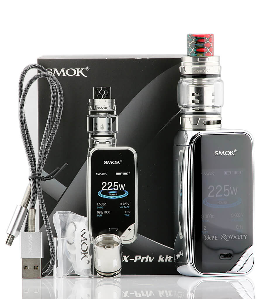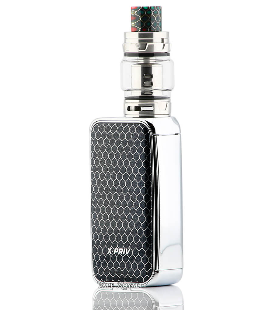The Prism Chrome SMOK X-PRIV Mod Kit is the latest device released from SMOK that builds upon the crazy popular PRIV line, The SMOK X-Priv Mod presents a beautiful display-focused structure device with highly customizable technology to pair with recently released TFV12 Prince Sub-Ohm Tank. The X-PRIV 225W Box Mod has been developed to integrate some of SMOKTech’s most creative design elements, crafting a visually striking chassis centered around the large OLED display. The chassis features curvature lines with high-end impression in a wide variety of colorful finish to create a timeless piece. Powered by dual high-amp 18650 batteries (sold separately), the X-PRIV has a maximum firing power of 225W and a plethora of output adjustments ranging from temperature control suite with added Memory Mode for increased precision as well a full-suite of protection. Each kit is paired with the new SMOK TFV12 Prince Tank, presenting a maximum capacity of 5mL, new button-lock hinged top-fill, smooth dual bottom airflow control, and the versatile TFV12 Prince Coil System. Offering power, sophistication, and phenomenal build quality, the SMOK X-PRIV 225W TC Starter Kit is bound to be an X-factor device in the high-performance system segment.